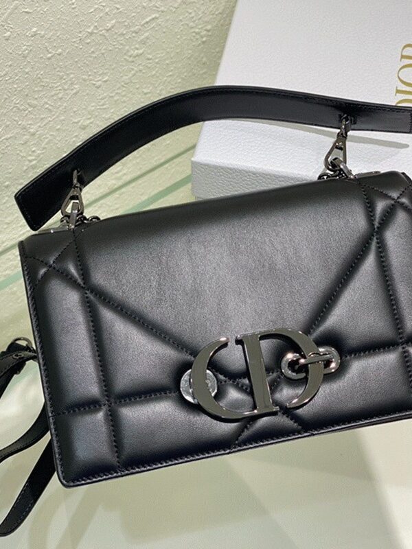 Dior 30 Montaigne Chain Bag with Handle in Black Lambskin