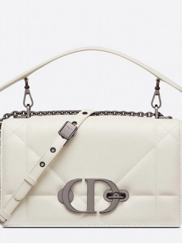 Dior 30 Montaigne Chain Bag with Handle in White Lambskin