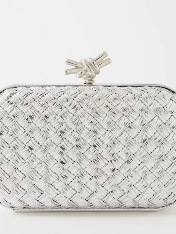 Fake Bottega Veneta Knot Minaudiere Clutch Silver Intreccio