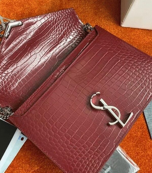Fake Saint Laurent Cassandra Medium Bag Bordeaux Crocodile