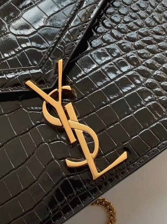 Fake Saint Laurent Cassandra Medium Bag Black Crocodile