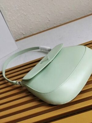 The Prada Cleo bag radiates refined elegance, revisiting a classic 1990s design with a fresh perspective. Its smooth, curved silhouette, characterized by rounded edges and a rounded base, gives the flap bag a light and graceful look. Made from brushed leathera contemporary and adaptable material closely associated with Pradathis piece invites countless styling opportunities through its blend of textures and contrasts. The iconic enamel triangle logo on the flap adds a distinguished and elegant finishing detail. Made from brushed leather Equipped with a leather handle Accented with metal hardware Features an enameled metal triangle logo on the flap Secured by a magnetic closure Lined with Prada logo nylon and includes a patch pocket Dimensions: 22 x 15.5 x 4 cm Comes with a Prada dust bag and certificate card.