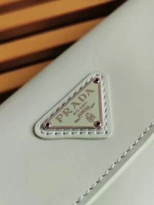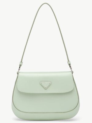 The Prada Cleo bag radiates refined elegance, revisiting a classic 1990s design with a fresh perspective. Its smooth, curved silhouette, characterized by rounded edges and a rounded base, gives the flap bag a light and graceful look. Made from brushed leathera contemporary and adaptable material closely associated with Pradathis piece invites countless styling opportunities through its blend of textures and contrasts. The iconic enamel triangle logo on the flap adds a distinguished and elegant finishing detail.