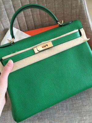 Like the Hermes Birkin, the Kelly is crafted entirely by hand by skilled artisans. Each component, from leather to hardware, is carefully inspected to meet Hermes rigorous quality standards. Though it features a structured shape, the Retourne construction adds a slightly relaxed look. With a detachable shoulder strap, it can be worn either over the shoulder or carried in-hand.