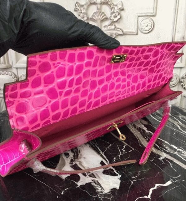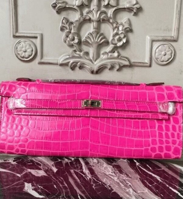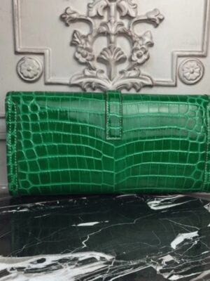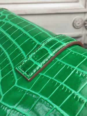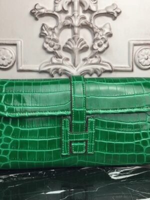 The Jige clutch stands out with its compact form and the classic H logo closure. The leather flap tucks neatly under the H clasp and is accented by distinctive contrast stitching. This clutchs minimalist hardware and polished design offer an elegant option for casual outings, office use, and everyday wear. Constructed from 100% crocodile-embossed calf leather. Flap top secured by the H logo closure. Leather-lined interior. Size: 29 x 15 x 3 cm. Includes a Hermes dust bag and certificate card.