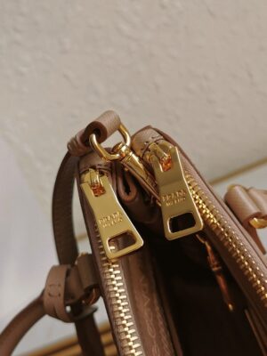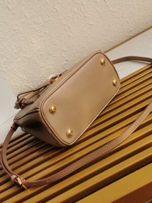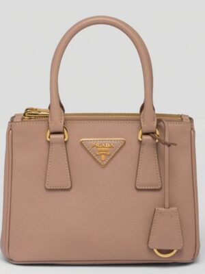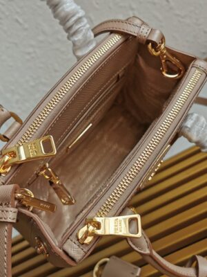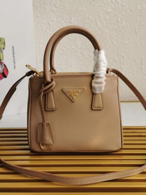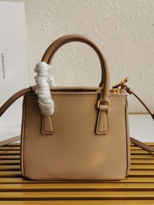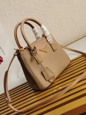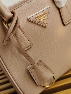 The Prada Galleria bag, assembled from 83 individual components, showcases a blend of industrial precision and meticulous handcrafting. Its design is elegant yet highly functional, representing a perfect balance of form and utility, combining traditional heritage with modern styling. Recognized as a symbol of timelessness, the Galleria bag embodies Pradas signature identity in the 21st century. The mini version is crafted from the brands iconic Saffiano leather, patented by the founder, which features a distinctive crosshatch texture and waxed finish.