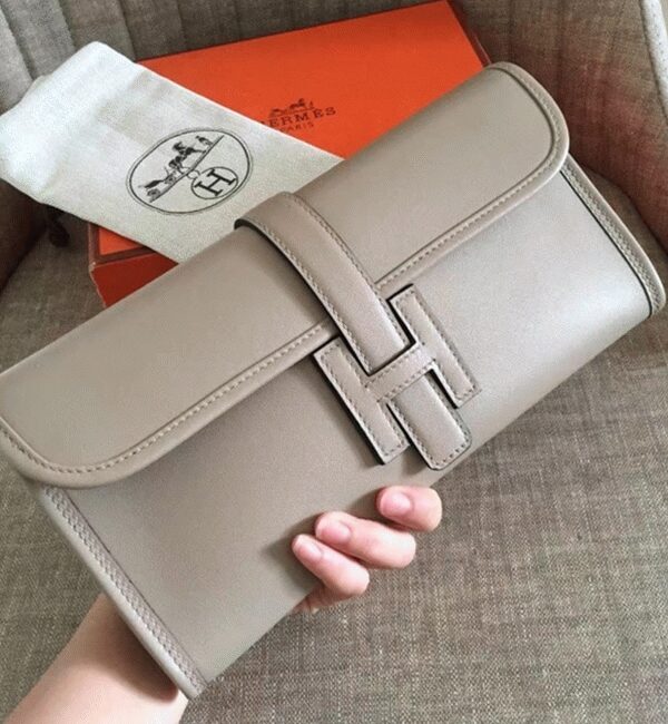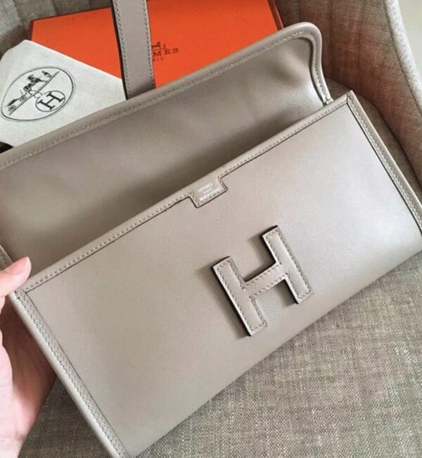 Refined and feminine, this clutch stands out with its elongated silhouette, drawing inspiration from the timeless Hermes Kelly. A petite top handle and sophisticated buckle-style clasp bring versatility, allowing it to shine from formal events to elegant evenings. Crocodile-embossed calfskin leather Single flat top handle Flap design with dual leather straps and a polished turn-lock Interior lined in leather, equipped with one flap pocket Size: 31 x 13 x 2.5 cm Hermes dust bag and certificate card included
