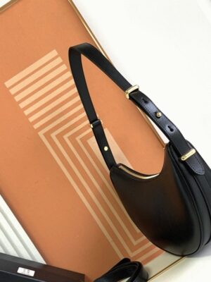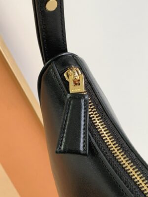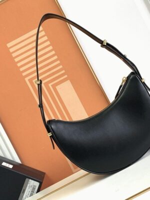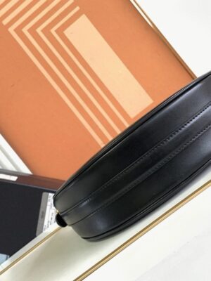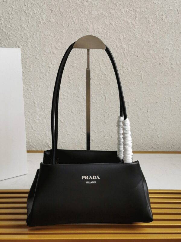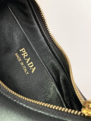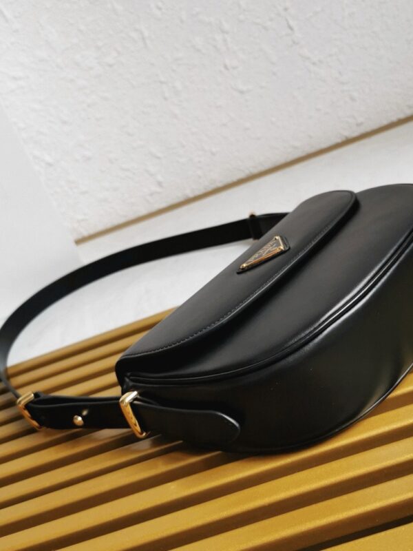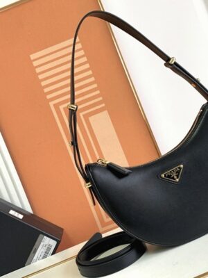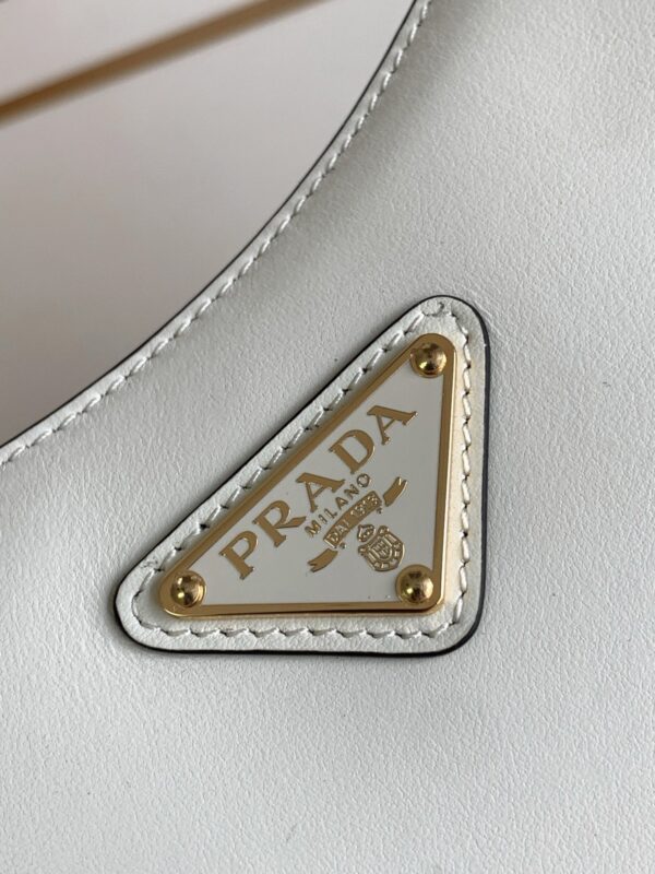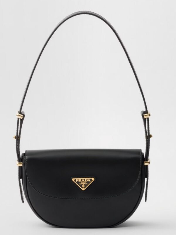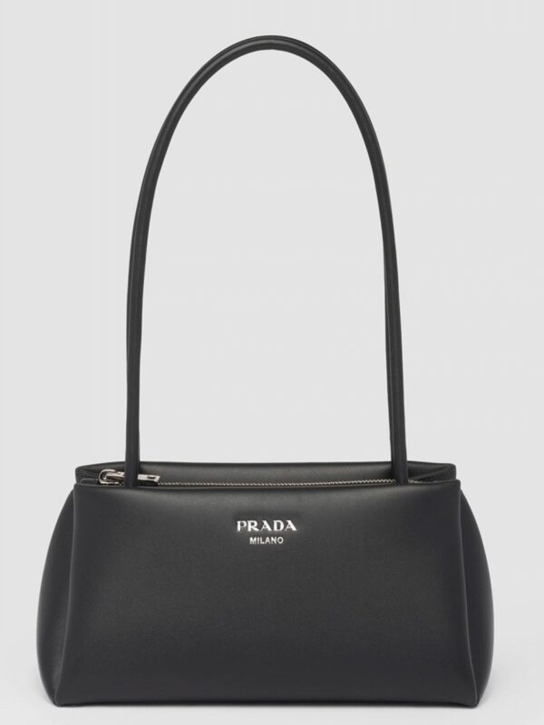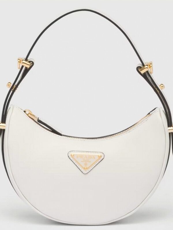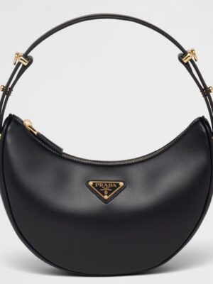 This mini bag is defined by its smooth, flowing curves that present a fresh, modern silhouette. The compact leather design includes polished metal hardware and the signature enameled metal triangle logo. It comes with an adjustable shoulder strap for multiple carrying options.