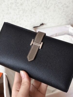 Still searching for the perfect way to keep your cash, cards, bills, and coins organized? Hermes Bearn is the ideal wallet. It offers a timeless luxury feel with its compact shape and sophisticated design. Featuring classic Hermes details like expandable gussets, this long wallet provides ample space, balancing elegance and practicality.