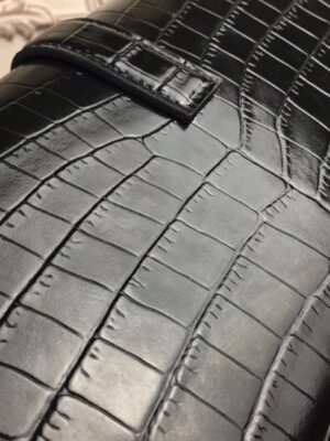 Constructed from 100% crocodile embossed calf leather.