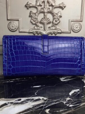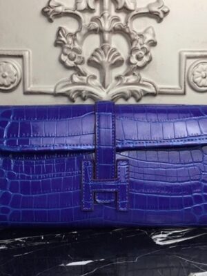 The Jige clutch features a distinctive compact shape with the signature H logo clasp. It has a leather flap that slides neatly under the H closure, highlighted by striking contrast stitching. The clutchs clean design and minimalist hardware convey elegance, making it suitable for casual outings, office environments, and everyday use.