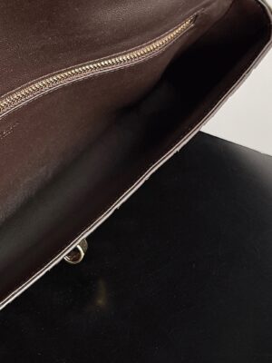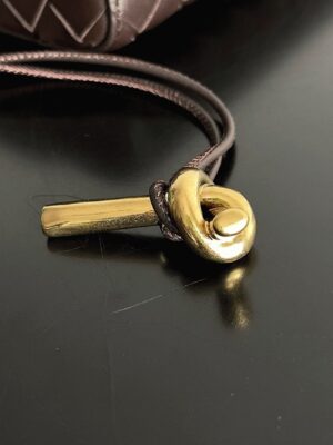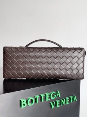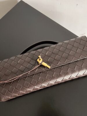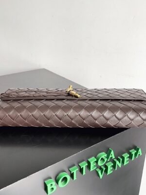 The Andiamo Clutch from Bottega Veneta showcases the brand’s expert craftsmanship, featuring a mirror-laminated lambskin and meticulous attention to detail. Woven using the iconic intrecciato technique, the clutch is secured with a distinctive gold-tone metal knot closure. It offers ample space to carry essentials like your lipstick, cardholder, and phone.