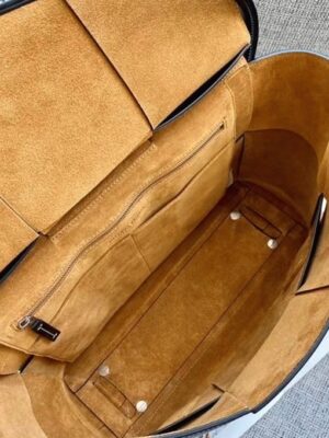 Under the creative direction of Daniel Lee, Bottega Veneta has introduced several iconic bags, including the “Arco” tote. The bag is crafted from wide leather panels, skillfully woven using the brand’s signature intrecciato technique. Inside, you’ll find a suede lining with ample space for your essentials. Suede lining One zippered interior pocket, two open pockets Top handle with a 22 cm drop Size: 48 x 27 x 12 cm Includes Bottega Veneta dustbag and authenticity card.