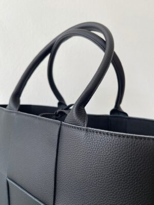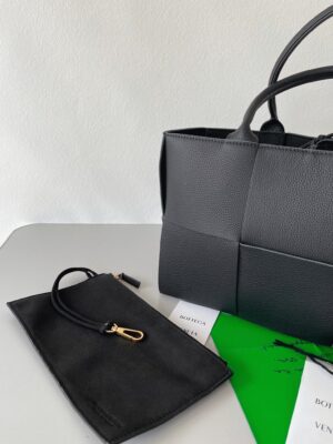 Bottega Veneta’s “Arco” tote bag is the ideal companion for daily use, offering both ample space and a classic interior. The bag is crafted from grained calfskin and features a larger version of the signature intrecciato weave. Its detachable zipped pocket is perfect for organizing smaller items and ensuring they stay secure.