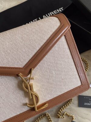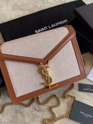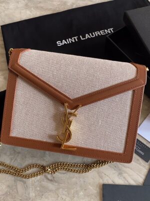 Home / Bag/ Cassandra Monogram Clasp Bag in Canvas and Smooth Leather