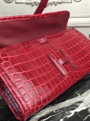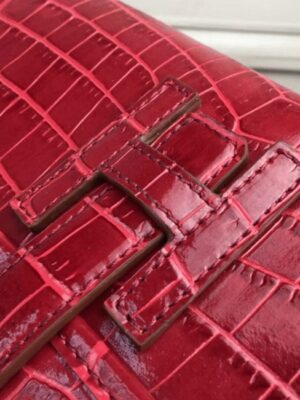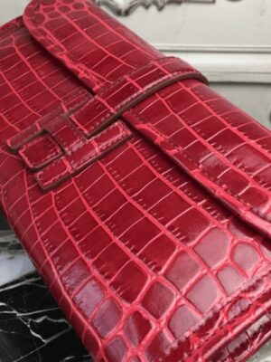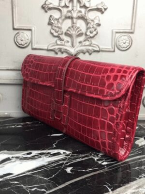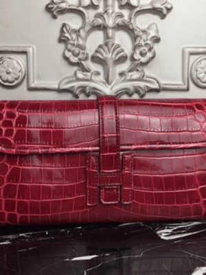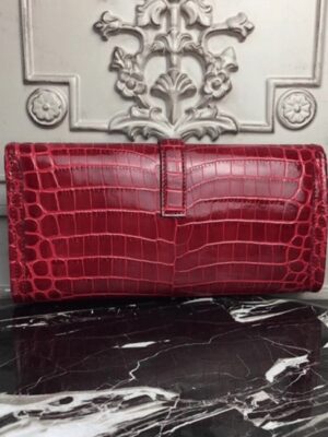 dark red crocodile leather Hermes Jige Elan clutch bag