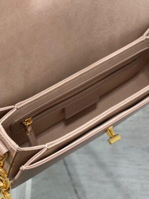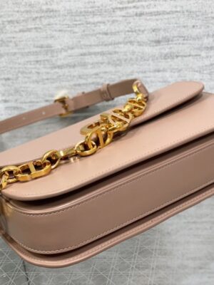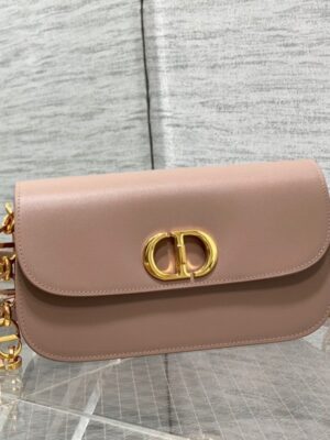 The 30 Montaigne Avenue bag continues the signature lines elegant tradition with a timeless design. Crafted from box calfskin, it has a gently rounded flap secured by an antique gold-finish metal ‘CD’ clasp inspired by the seal of a Christian Dior perfume bottle. Details such as the embossed ’30 MONTAIGNE’ signature on the back and the adjustable chain strap made of alternating gold-finish metal and tonal enamel links with a leather insert complete its polished look.