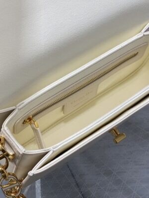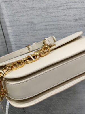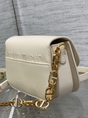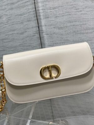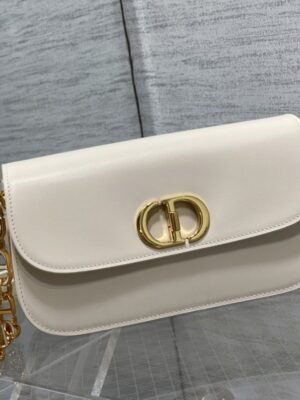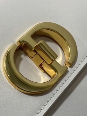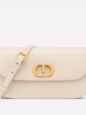 The 30 Montaigne Avenue bag offers a timeless and elegant design within the signature line. Crafted from box calfskin, it features a gently curved flap secured by an antique gold-finish metal ‘CD’ clasp inspired by the seal of a Christian Dior perfume bottle. Additional refined details include the embossed ’30 MONTAIGNE’ logo on the back and an adjustable chain strap combining gold-finish metal and tonal enamel links with a leather insert, harmonizing beautifully with the leather body.
