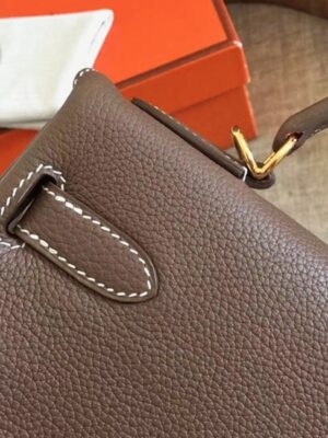 The Sellier silhouette, defined by visible hand stitching on the outside, gives the bag its signature structure. Equipped with a matching strap, the Kelly can be carried by hand or worn over the shoulder with ease and grace.