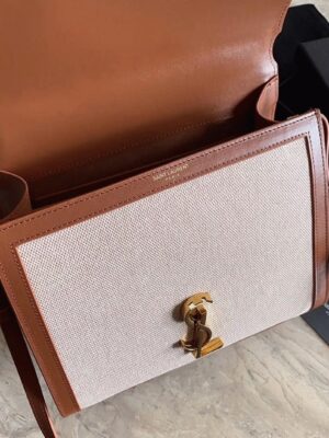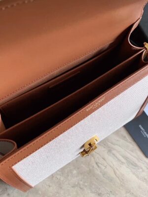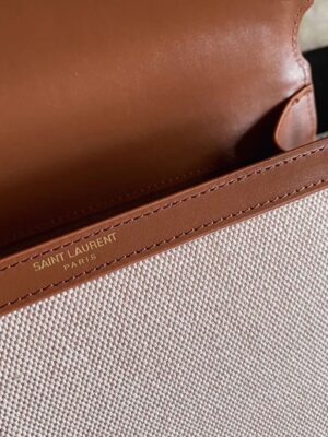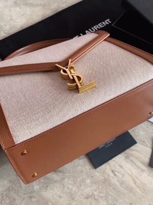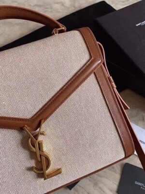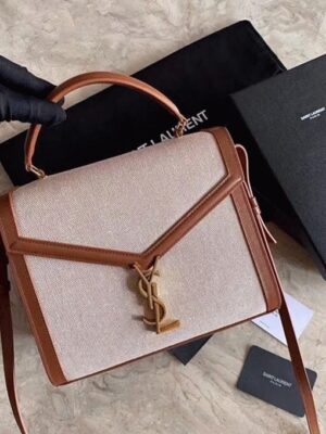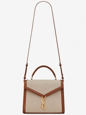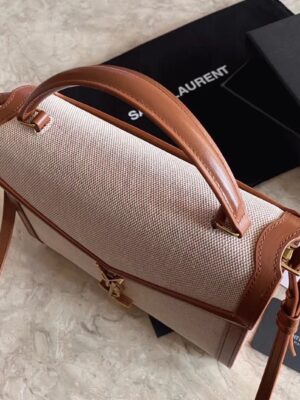 The Cassandra Tote from Saint Laurent brings the ladylike bag trend into the new season. This canvas tote features a structured shape, leather lining, and gold YSL hardware. It’s equipped with dual internal compartments for easy organization. You can carry it cross-body using the shoulder strap or hold it by the top handle.