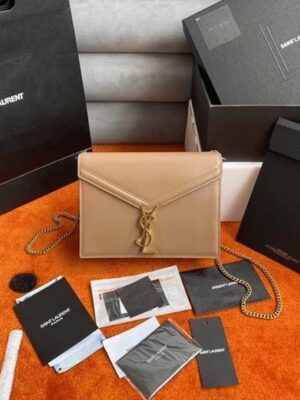 Home / YSL bags/ Fake Saint Laurent Cassandra Medium Chain Bag Beige