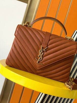 Home / YSL bags/ Fake Saint Laurent College Medium Chain Bag Brown