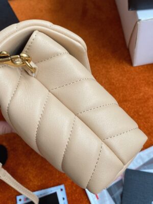 The Loulou Toy Bag, a smaller iteration of Saint Laurent’s classic design, is named after Loulou de La Falaise, the founder’s muse. This calfskin bag is beautifully quilted with chevron patterns and features pockets for your essentials. A removable, adjustable leather strap adds to its functionality.