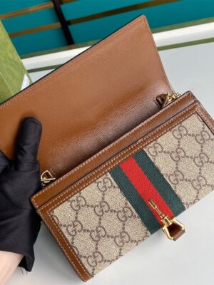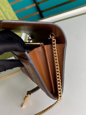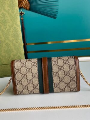 Super high-quality 1:1 mirror replica bag Style 652681 Beige and ebony GG Supreme canvas, a material with low environmental impact Brown leather trim Gold-toned hardware Green and red Web Viscose lining Piston detail 12 card slots and two bill compartments, two separate interior compartments and zip coin pocket Chain strap with 60cm drop Snap button closure Weight: 300 gr Open: W19cm x H18cm; Closed: W19cm x H10cm x D3.5cm Packing: Box,Invoice,Cards and Dustbag.