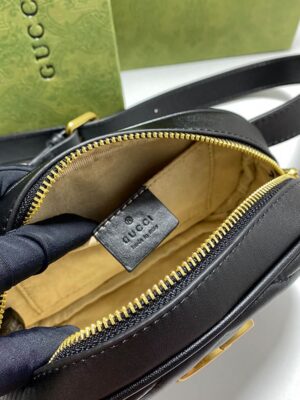 High Quality 1:1 Brand Replica Bags Black quilted chevron leather with black leather details Golden metal accessories Model is 180 cm tall Double G Internal open pocket Adjustable buckle Top zipper closure Weight: about 0.5 kg 18 cm (width) x 11 cm (height) x 5 cm (depth)