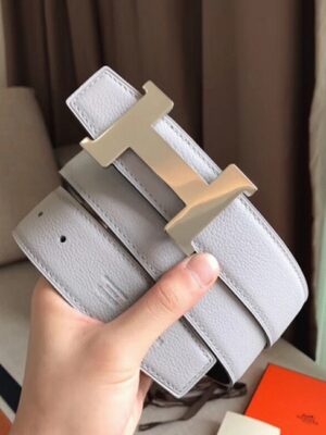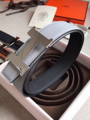 Collectors highly regard Hermes belt kits for their classic elegance. This chic H buckle belt features a reversible strap made of Clemence and Swift leather, finished with a palladium-plated buckle for a polished look.