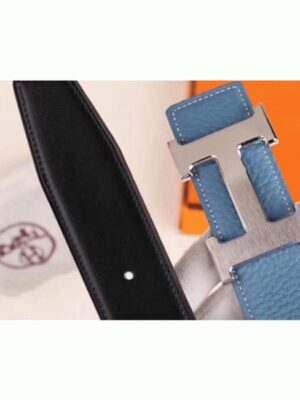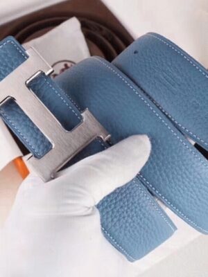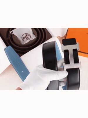 Celebrated worldwide, Hermes belt kits are treasured for their classic design. This chic H buckle belt is crafted with brushed palladium-plated metal and paired with a reversible leather strap for versatile luxury.