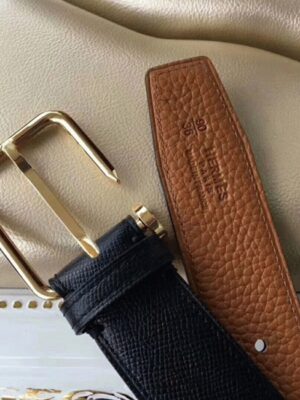 Hermes belt kits are highly desired by collectors worldwide for their timeless sophistication. This elegant H buckle belt, combined with a reversible leather strap, enhances any outfit with a refined touch of luxury.