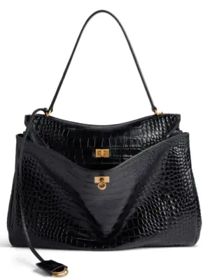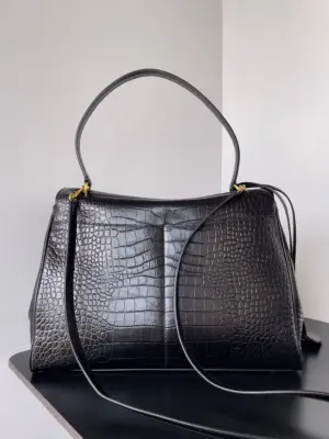 The Balenciaga Rodeo Bag, launching on May 10th, 2024, will feature crocodile-embossed calfskin for a luxurious, textured look. With pre-worn pleats, raw edges, and soft piping, this large tote reflects both sophistication and a relaxed, heirloom-like aesthetic.