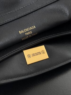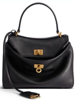 The Balenciaga Rodeo Bag Tote is an elegant accessory designed for everyday functionality. Featuring aged gold-tone hardware, this soft, unstructured leather bag exudes sophistication. The detachable shoulder strap allows for flexible styling, whether you prefer to carry it by hand or use it as a crossbody bag.