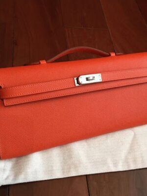 Home / Hermes bags/ Orange Epsom Knockoff Hermes Kelly Cut Clutch Bold Handbag
