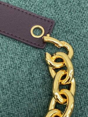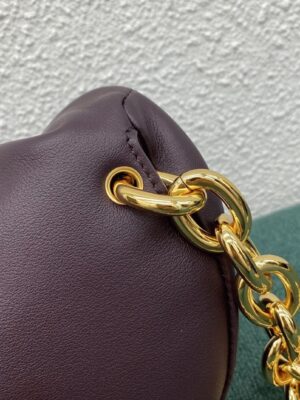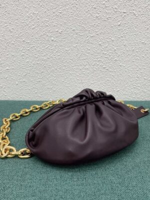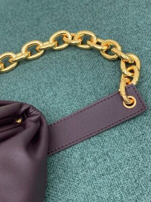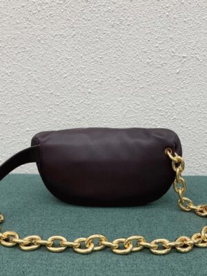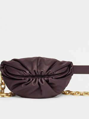 The Pouch clutch was Daniel Lee’s first design for Bottega Veneta, translating the brand’s iconic cloud-like shape into a more practical, hands-free style. This bum bag is made from nappa leather and wraps around the waist with a gold-tone chain. The top features a ruched frame that opens with a hinge for easy access.