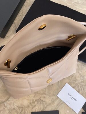 The Puffer Toy bag from Saint Laurent, named after Loulou de la Falaise, one of Yves Saint Laurent’s closest friends and key inspirations, is a stunning tribute to the designer’s muse. This compact version of the iconic bag is adorned with the brand’s signature monogram hardware, finished in a striking black tone. It pairs effortlessly with tailored outfits and a bold red lip, encapsulating the timeless elegance of Saint Laurent’s eternal muse.