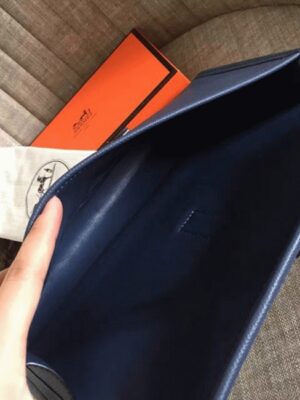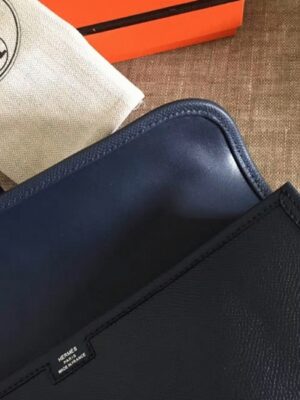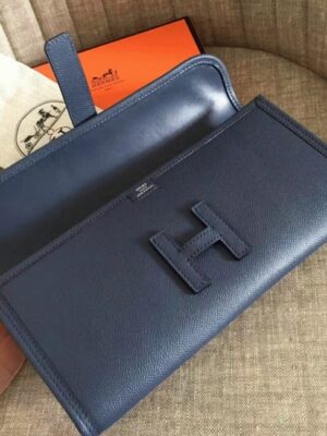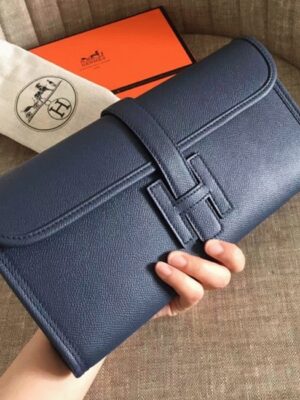 Jiges unique design is showcased in a compact silhouette with the H logo closure. The clutch has a leather flap that neatly slides under the H clasp, accented with contrast stitches. This elegant design with minimal hardware suits casual outings, office use, and everyday wear.