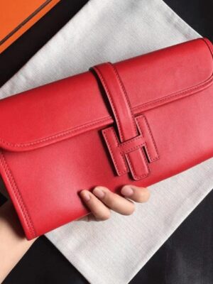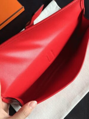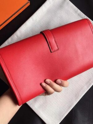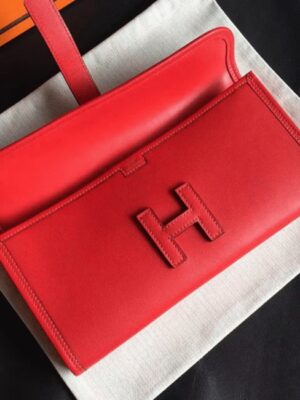 The Jige clutch is defined by its compact silhouette and the classic H logo closure. It combines a suede leather body with Epsom leather trim. The leather flap tucks under the H clasp, decorated with prominent contrast stitching. This elegant accessory is ideal for casual and office wear, as well as daily use.